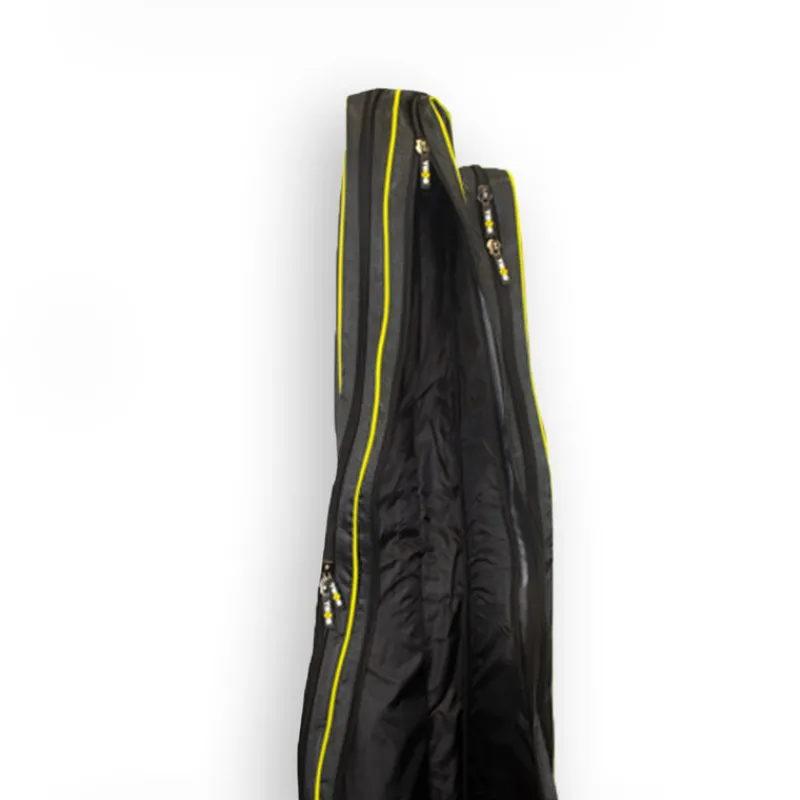Conçu en toile épaisse 420D déperlante, il protège efficacement votre matériel contre la pluie et les projections d’eau. Ce fourreau souple permet de transporter 2 cannes montées avec leurs moulinets réparties dans 2 grandes poches indépendantes.