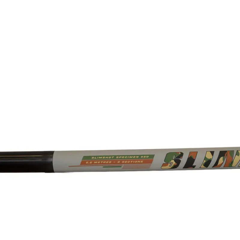 La canne SLIMSHOT PRO SPECIMEN 580 est un modèle spécifiquement développé pour les pêches fortes de « spécimens » en bordure. Grâce à son deuxième talon sérigraphié et renforcé, elle peut être utilisée en longueur pleine à 5.80m, où en retirant le talon pour obtenir une canne plus courte, portée à 4.70m. Fabriquée à partir de nappes carbone haut module, la SLIMSHOT PRO SPECIMEN 580 a été mise à rude épreuve lors des phases de test, et sa grosse réserve de puissance lui a permis de contrer sans effort de très gros poissons, tels que des carpe de 15Kg+ ou des esturgeons de 20Kg+ !