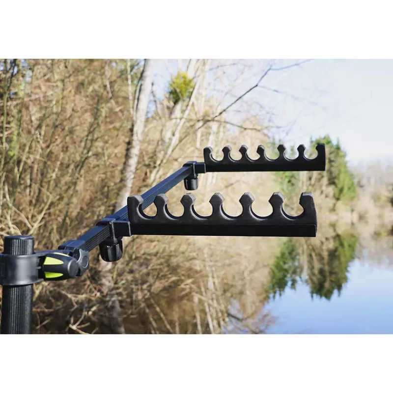 Le FULL 6 KITS ROOST est un support complet conçu pour accueillir jusqu’à six kits ou sections de canne, offrant un rangement ordonné, stable et sécurisé au bord de l’eau. Sa structure large et bien équilibrée permet de maintenir les kits en position sans risque de chute, même par vent fort ou sur terrain irrégulier.