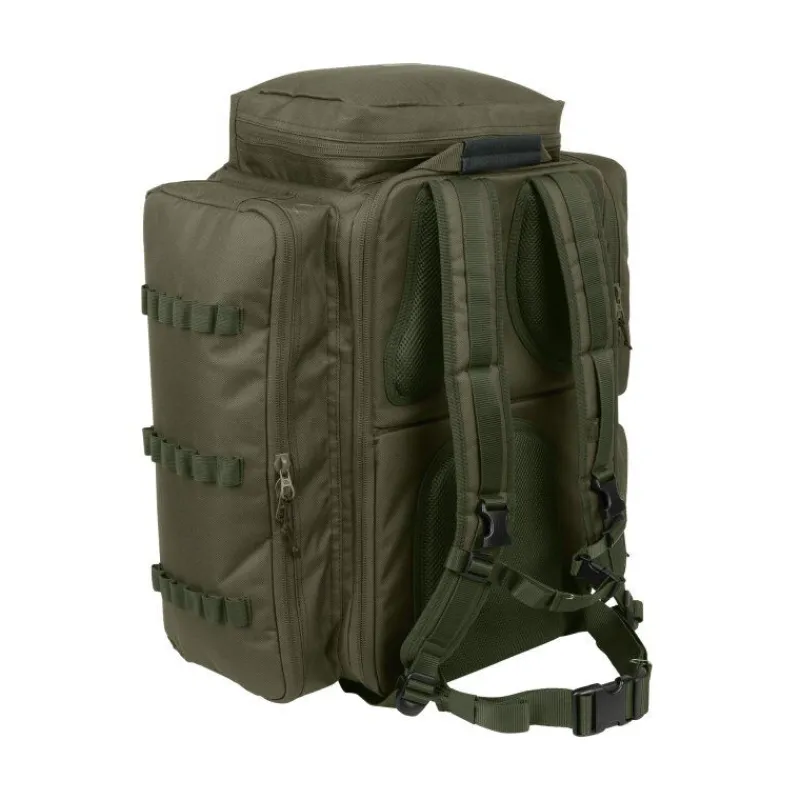 Le sac à dos permet plusieurs configurations pour que l’utilisateur puisse l’adapter à ses propres préférences de rangement. Il est parfaitement adapté pour la pêche mobile ou les sessions longues, et son design fin et profilé permet un rangement facile sous un bedchair.